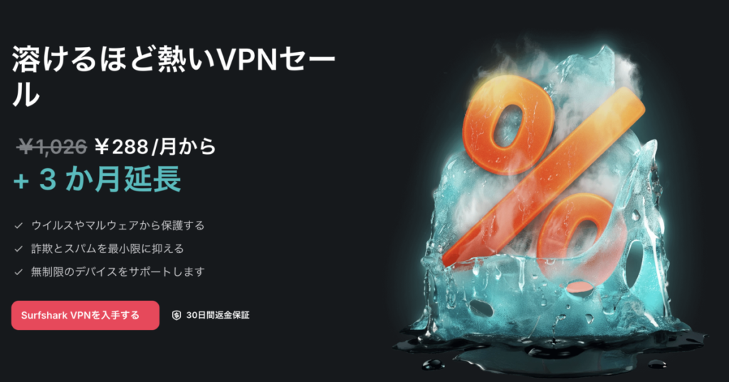 Surfshark VPNでは、30日間の返金保証キャンペーンを実施しています。
