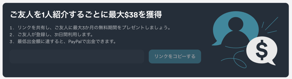 こちらは、すでに登録されているご友人が発行したURL経由で申し込みをすると、通常で契約したプランに加えて、1ヶ月or3ヶ月のプランが配布されるキャンペーンです。